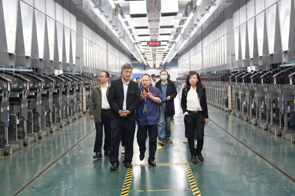 长三角研究院专家一行在沈总陪同下,,,,,深入生产一线考察“未来工厂”建设情形,,,,,辖档退解纺丝、卷绕、包装、立体客栈等运行情形。。。。。。。。