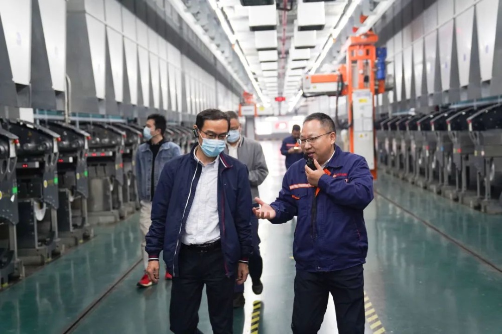 陈局长一行在王总的陪同下深入一线考察“聚酯长丝未来工厂”,,,,,,,详细相识了企业生产谋划情形。。。。。。。。