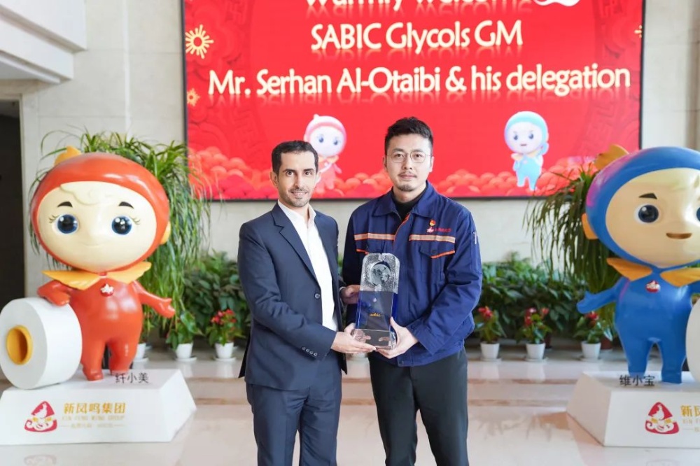 沙比克集团(SABIC)乙二醇全球总司理Mr.Serhan AI-Otaibi向摩登4-梦想照进现实,努力成就未来!集团赠予纪念品。。。。。