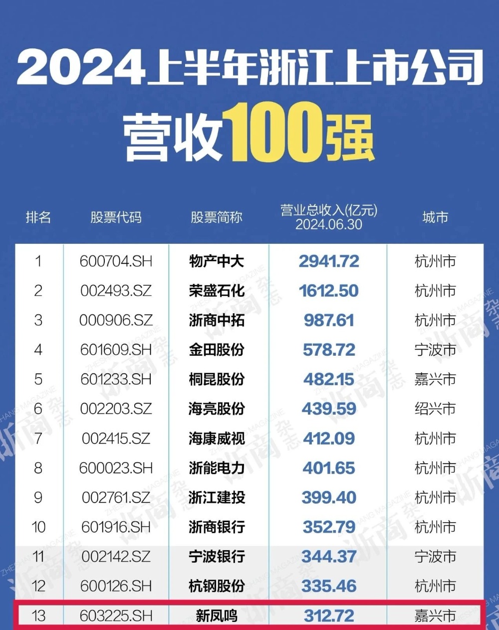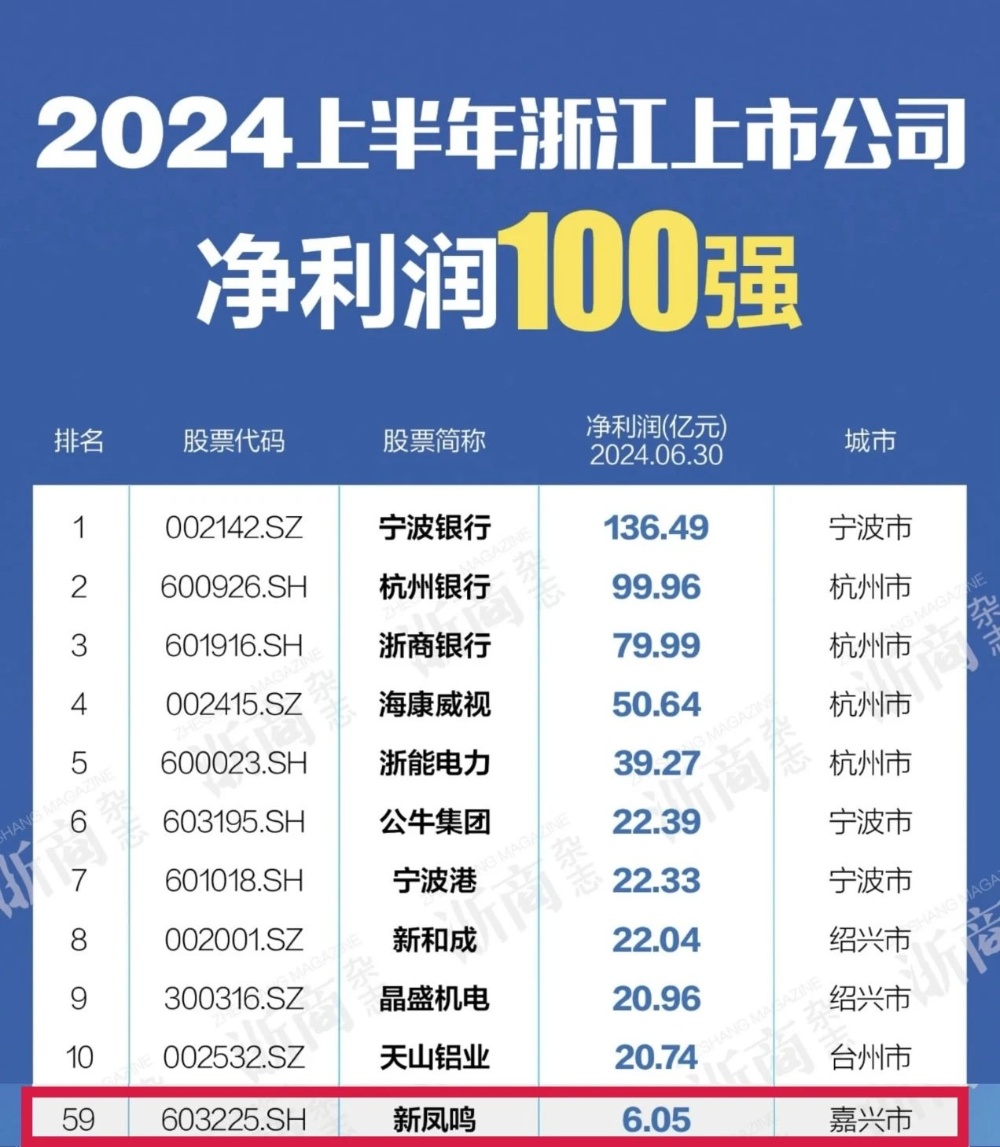 摩登4-梦想照进现实,努力成就未来!NO.13、NO.59!2024上半年浙江上市公司营收、净利润双百强榜出炉