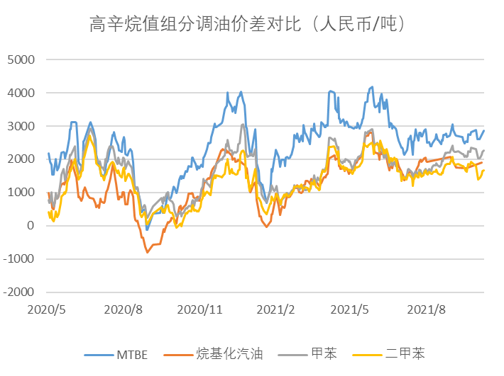 MTBEºÍÍé»ù»¯ÆûÓ͵ÄÐÁÍéÖµ»®·ÖΪ117ºÍ95£¬£¬£¬£¬£¬£¬£¬£¬Ì×ÓÃÉÏÎÄÖе÷Óͼ۲ʽ£¬£¬£¬£¬£¬£¬£¬£¬½«ËÄÖÖ¸ßÐÁÍéÖµµ÷ÓÍ×é·ÖµÄµ÷Óͼ۲î¾ÙÐбÈÕÕ¡£¡£¡£¡£¡£¡£ÒÔMTBEΪÀý£¬£¬£¬£¬£¬£¬£¬£¬½üÆÚMTBEµ÷Óͼ۲î¸ßÓÚ¼×±½¼°¶þ¼×±½£¬£¬£¬£¬£¬£¬£¬£¬MTBE×÷Ϊ¸ßÐÁÍéÖµµ÷ÓÍ×é·Ö¸ü¾ßÓÅÊÆ£¬£¬£¬£¬£¬£¬£¬£¬´Ëʱ¼×±½/¶þ¼×±½ËäÈ»µ÷ÓÍÀûÈó½ÏÆç»¯ºÍÒì¹¹»¯·´Ó¦ºÃ£¬£¬£¬£¬£¬£¬£¬£¬µ«Æä×öµ÷Ó͵ÄÐÔ¼Û±ÈÒ»Ñùƽ³££¬£¬£¬£¬£¬£¬£¬£¬Çл»µ÷Ó͵ıÈÀýÓÐÏÞ¡£¡£¡£¡£¡£¡£