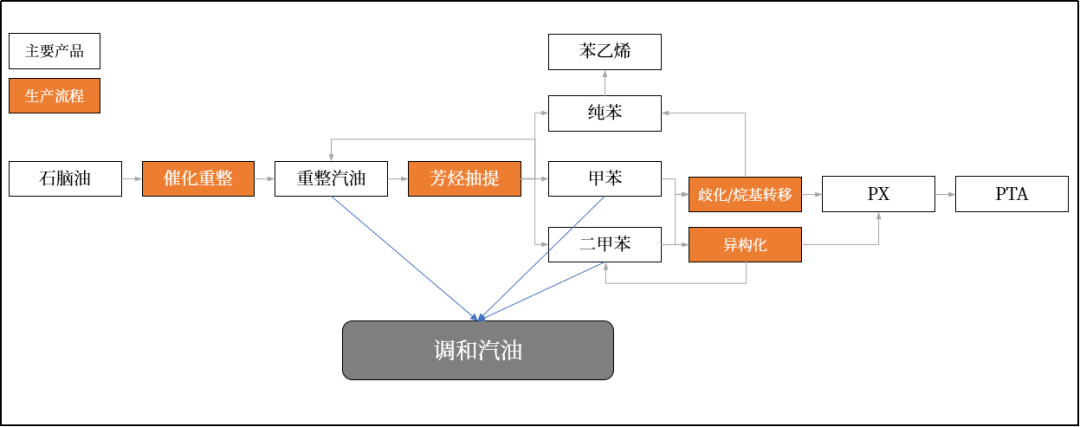ÔÚ¼×±½¡¢¶þ¼×±½Æ½ÊèÉ¢³öÀ´Ö®ºó£¬£¬£¬£¬£¬£¬£¬£¬¿ÉÒÔͨ¹ýÆç»¯/Íé»ù×ªÒÆ/Òì¹¹»¯¹¤ÒÕ·´Ó¦ÌìÉúPXºÍ´¿±½ £»£»£»£»£»£»Í¬Ê±£¬£¬£¬£¬£¬£¬£¬£¬ÓÉÓÚ·¼Ìþ¸ßÐÁÍéÖµµÄÌØÕ÷£¬£¬£¬£¬£¬£¬£¬£¬Ò²¿É×÷Ϊµ÷ÓÍ×é·ÖÌí¼ÓÖÁÆûÓÍÖС£¡£¡£¡£¡£¡£