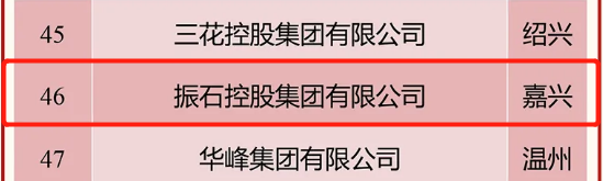 ●振石控股集团有限公司为今年新上榜企业,,,,,,,,并且冲进50强;;;;;;;;